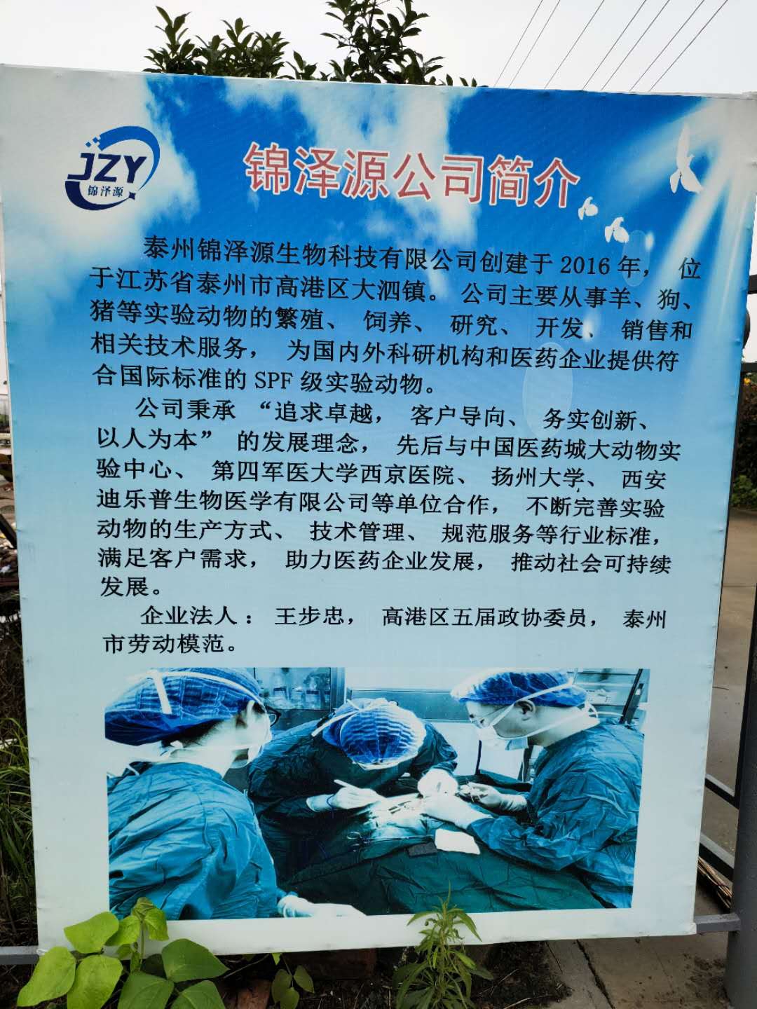 江蘇錦澤原生物科技有限公司創(chuàng)建于2016年,注冊資金1200萬元。公司主要從事羊、狗、豬等實(shí)驗(yàn)動物的繁殖、飼養(yǎng)、研究、開發(fā)、銷售和相關(guān)技術(shù)服務(wù),為國內(nèi)外科研機(jī)構(gòu)和醫(yī)藥企業(yè)提供符合國際標(biāo)準(zhǔn)的SPF級實(shí)驗(yàn)動物。