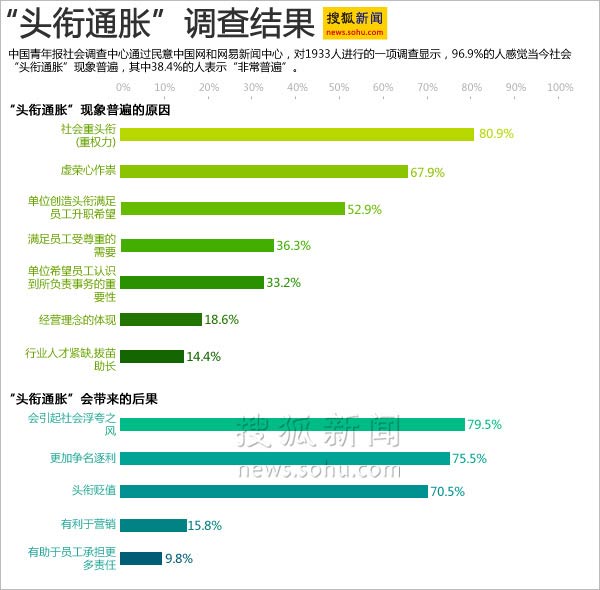 80.9%的人認為“頭銜通脹”源于當前社會重權(quán)