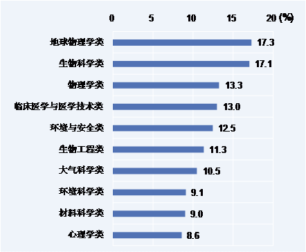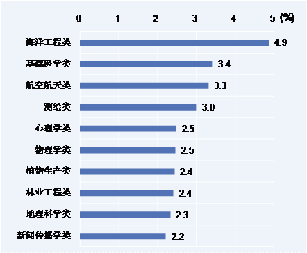 圖 被調(diào)查2011屆本科生計(jì)劃國內(nèi)讀研比例較高的10個(gè)專業(yè)類