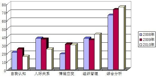 人際關系能力考察也由2009年的18%降低到2010年的13%,說明人際關系也漸漸淡出命題人視野。縱然人際關系題目比例降低,但是難度卻隨之增加,元素更加豐富,線索更加交織,以增加考生作答難度,從而形成區(qū)別度,使得更優(yōu)秀的考生能脫穎而出。